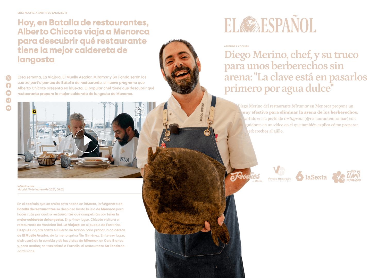 Miramar ha captado la atención de la prensa por su estilo gastronómico que fusiona producto local menorquín y técnica contemporánea, además de su incomparable ubicación frente a Cala Blanca.